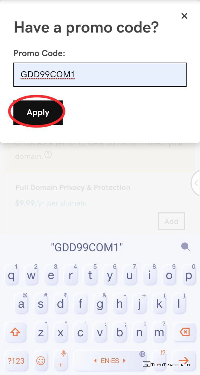 Enter GDD99COM1 and tap on Apply, it is working promo code.