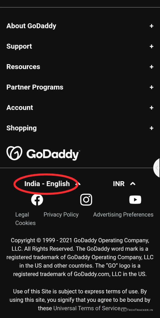– If you entered into wrong GoDaddy country website, then scroll down.