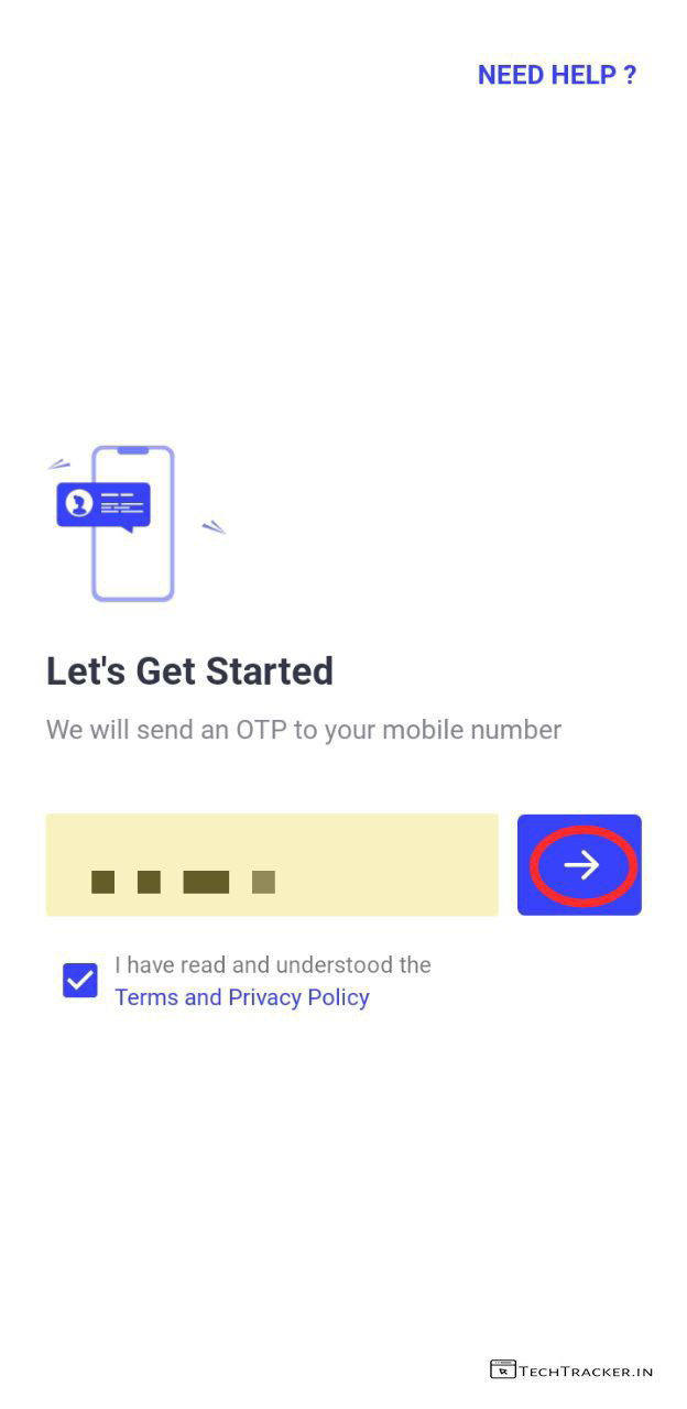– Enter OTP you received to your mobile no from CoinSwitch Kuber & Tap on ->