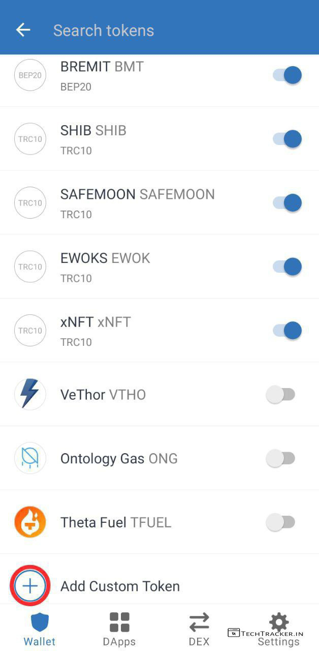 – Scroll down & Tap on + Add Custom Token