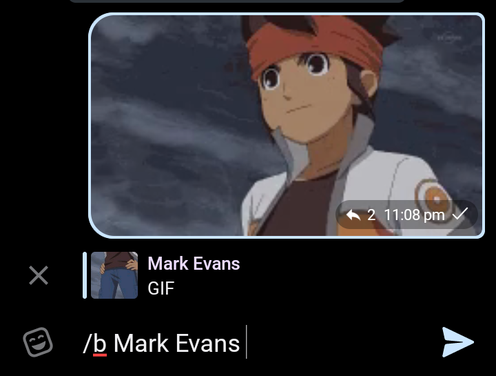 – Send Video or GIF, then reply command /b with whatever file name you like.