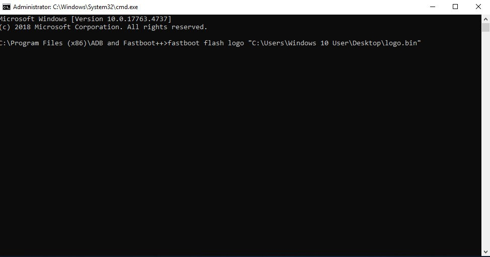 – Now, enter and execute command fastboot flash logo | drag and drop custom boot logo from your directory.